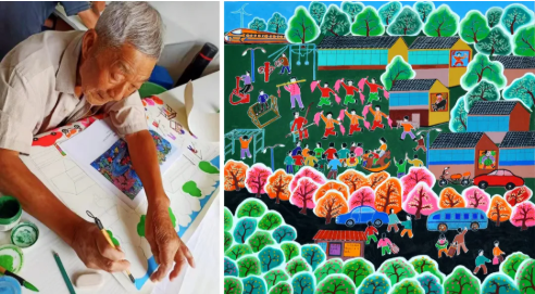 坚持和热爱是最好的老师,他的画作渐趋成熟。2021年他的画作《乐享晚年》入选中国农民画研究会主办的全国农民画线上云展,2020年另有两幅画作入选省级展览。