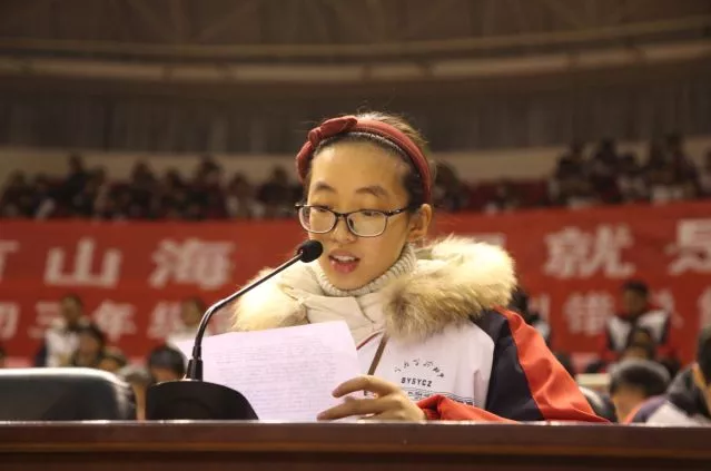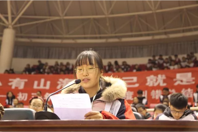来自初三(15)班的刘艳莉和初三(13)班的成昊扬同学分别代表优秀学生和突出进步学生发言。他们与同学们研讨了自己的学习心得,两位同学都谈到初三学生要抵制诱惑、静心学习,从本次纠错考试中总结得失,为期末考试实行最充分的准备。