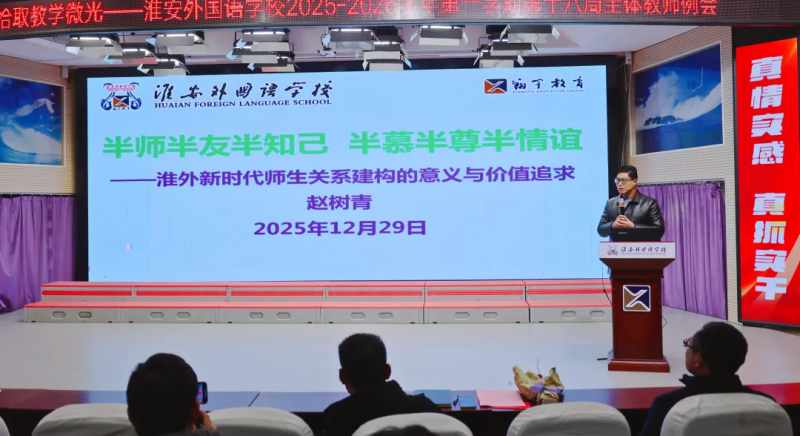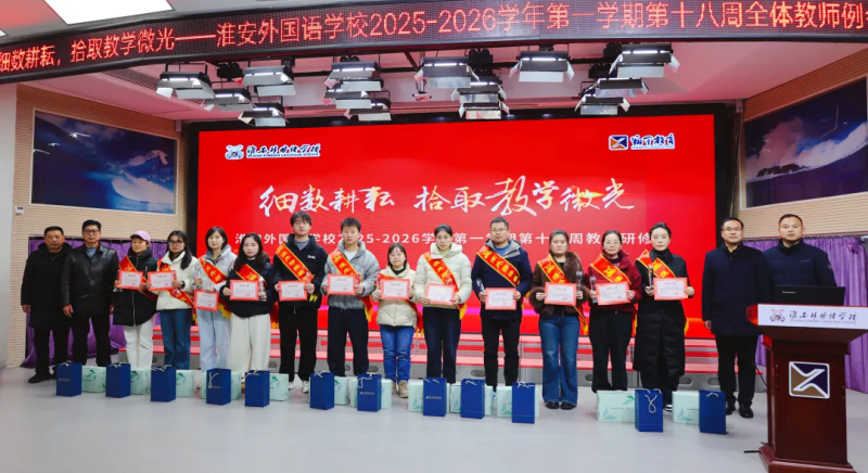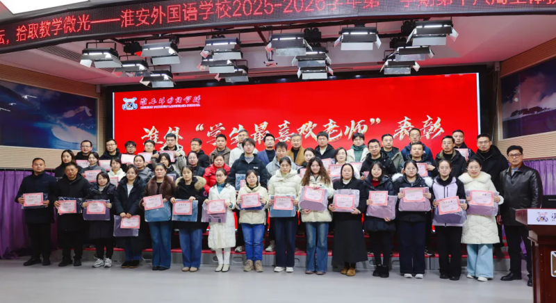 为总结学期教育教学经验,凝聚团队前行力量,12月29日下午,淮安外国语学校在阶梯教室召开第十八周全体教师例会。本次会议以“细数耕耘,拾取教学微光”为主题,顺利获得温情互动、才艺展示、表彰先进等多种形式,回顾教育路上的点滴温暖,激励全体教师继续秉持初心,携手前行。