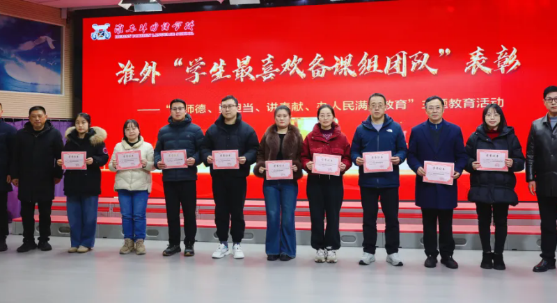 在榜样表彰环节,李文婷、杨秀华、朱颖、杨永高、陈芬、凌雷、花雷、何政武、胡雅婷、李婧、皮中楠、李磊十二位教职工分别荣获“榜样党员”“榜样教师”及“榜样员工”称号。他们以实际行动践行教育使命,在各自岗位上发光发热,成为全体淮外人学习的标杆。