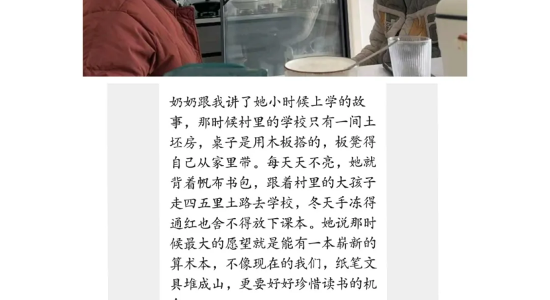 敬老爱老,传承中华好家风。元旦假期,同学们纷纷走进长辈身边,用实际行动传递孝心:为爷爷奶奶捶背揉肩,帮外公外婆收拾房间,耐心倾听长辈讲述过去的岁月故事。从艰苦的求学时光到难忘的生活往事,长辈的人生阅历成为最生动的成长教材。初二(1)班的陈梓妍同学说:“爷爷奶奶用岁月呵护我长大,在假期一定要多多陪伴他们。”简单的话语承载着晚辈对长辈最真挚的感恩,让尊老敬老的传统美德在实践中代代相传。