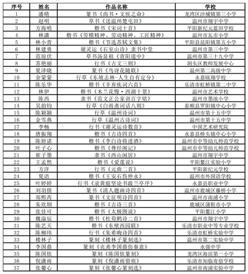 喜讯。2023年3月24日,温州文联公布第二届“墨香温州”建设美术书法作品成果展入展作品评选结果,赵明馆长和他的三位学生——高三9班崔子墨、高三11班魏溢辰、懂球帝app书法公益成人班余蒙蒙的书法作品同期入展。“墨香校园”版块全市共入展37人,懂球帝app师生占4人。